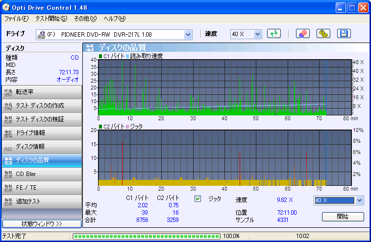測定項目はC1,C2,Jitter