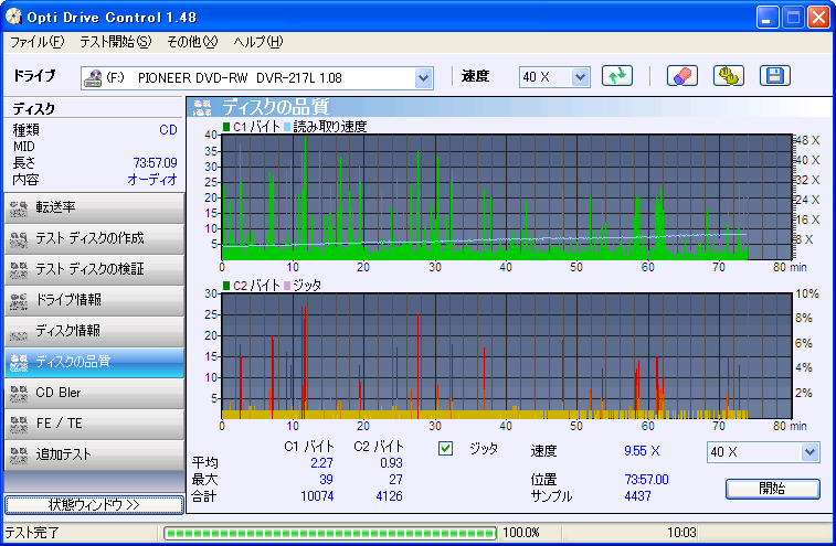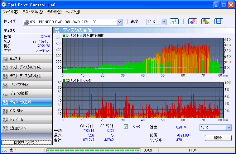 測定項目はC1,C2,Jitter