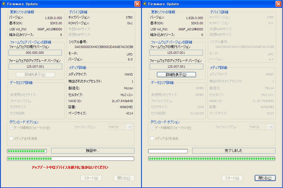 更新するときに内蔵メモリ4GBの中身がFAT32でフォーマットされてリセットされるので念のためmicroSDHCと内蔵4GBを事前にバックアップしておいてください。
