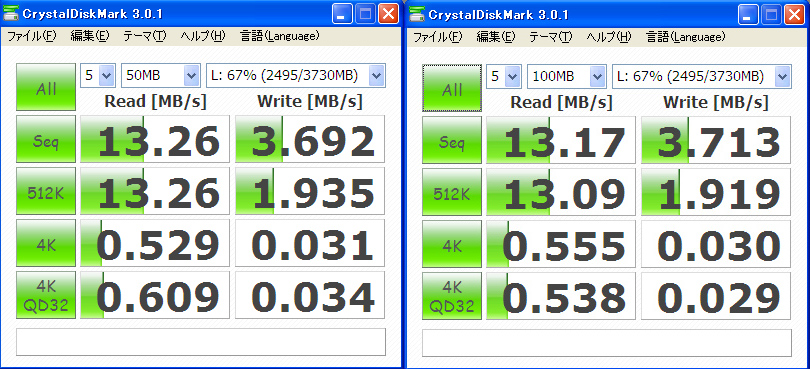 ・Cube C30にCrystalDiskMark 3.0.1で内蔵メモリの速度測定を実行しました
